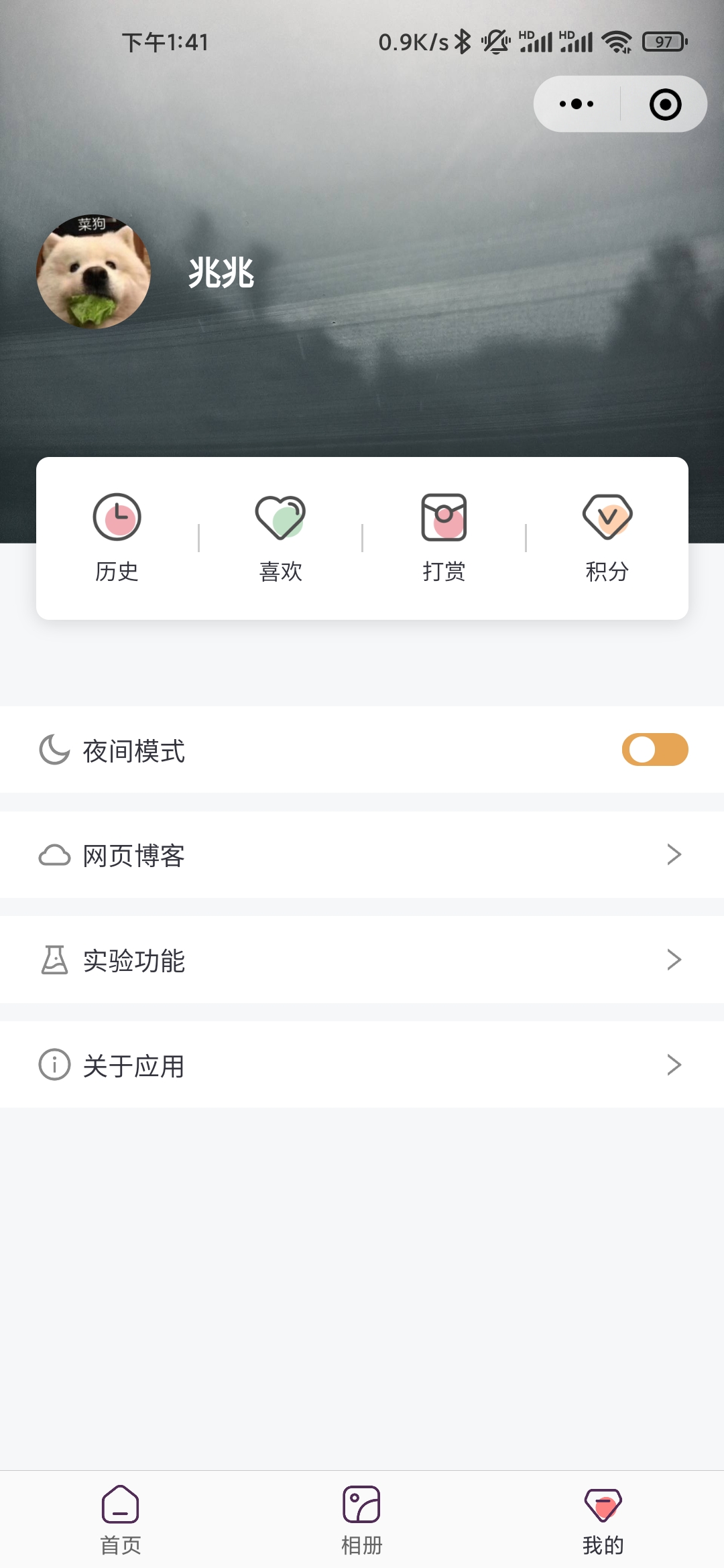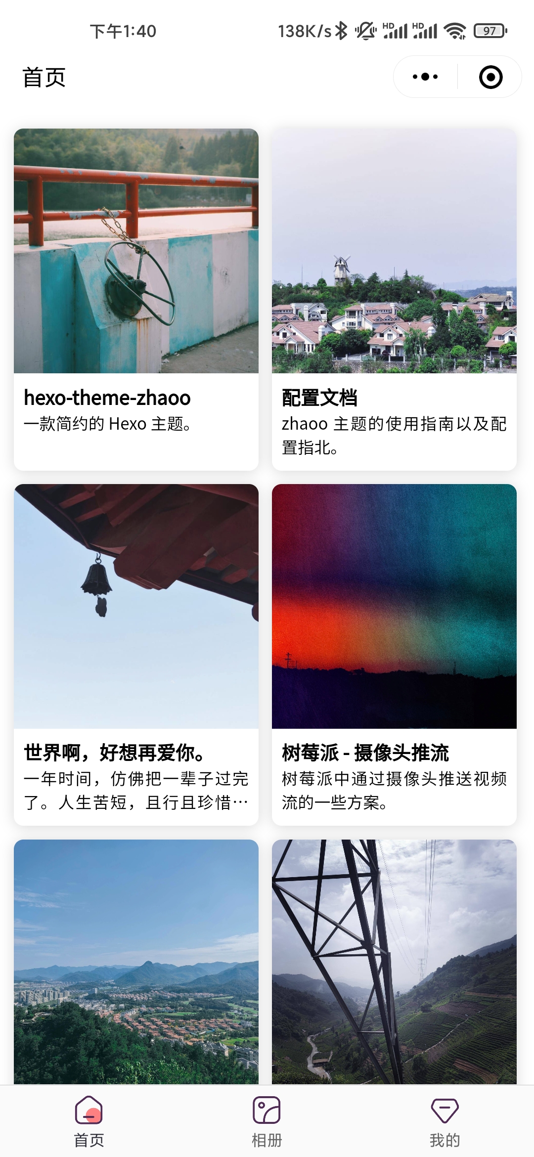 (2)我之所以觉得这个不错,有个重要的原因是这位作者打造主题的时候为主题定制了配套的博客小程序,和对应的API生成与调用。我觉得简直不要太酷,可能是我暂时还不会写小程序吧,反正博客部署之后立马就把小程序部署上了。