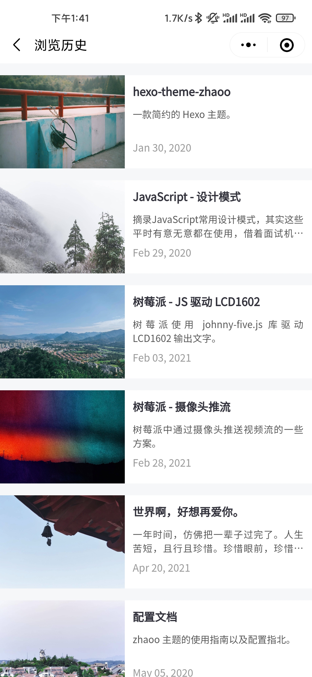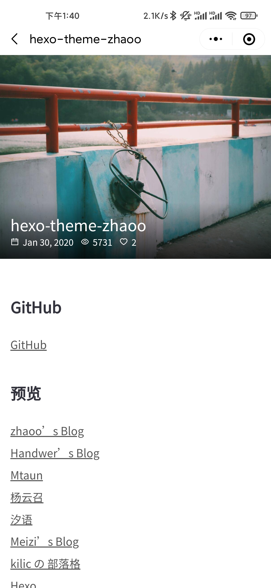 - 小程序:hexo-weapp-zhaoo (为 Hexo 定制的博客小程序)