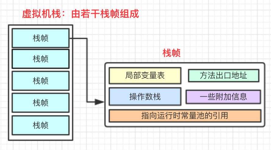 每个方法从调用到执行完毕的过程,就对应着一个栈帧在虚拟机中入栈到出栈的过程。