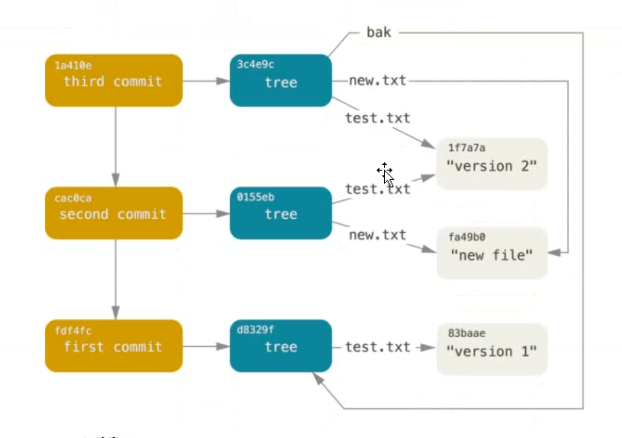 分支就是一个提交对象前面的指针,每次提交完成,指针就在提交对象的前面指向最新提交。
